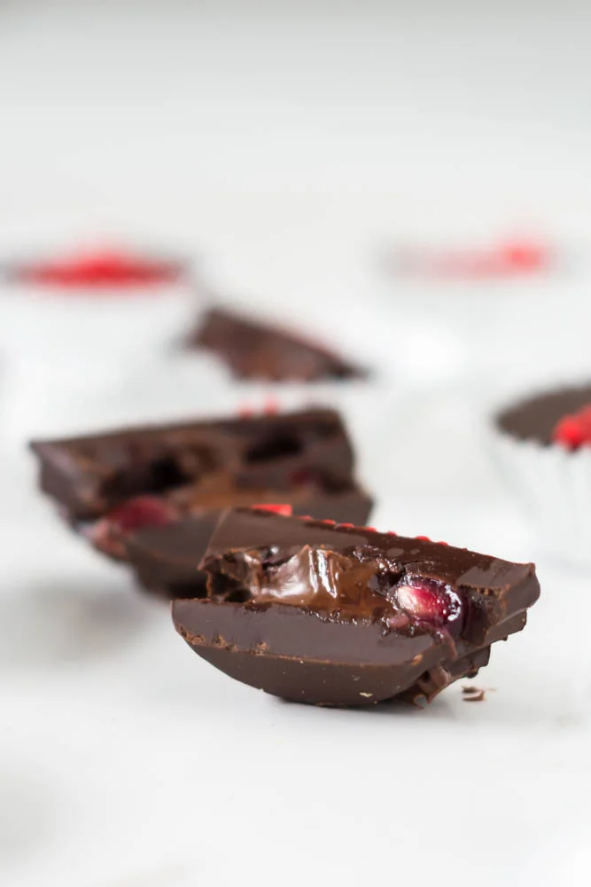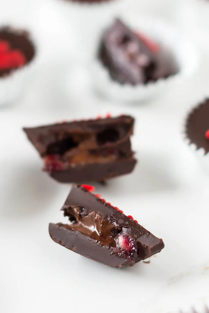 Hydrating pomegranate seeds accentuate the dark chocolate and creamy Nutella spread perfectly, with a truffle-like texture . . . solid on the outside and a flavorful, creamy surprise on the inside. One mini cup is all it takes as the decadent chocolate flavors will melt in your mouth and leave you satisfied, not over-full.